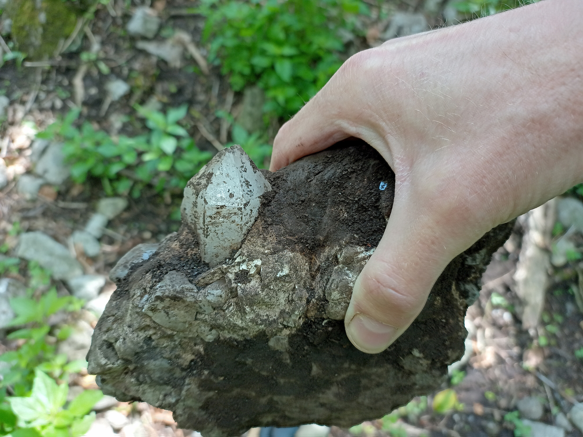 Kopec Veľká Baňa nad Račou tvorený Ca skarnom. Približné súradnice WGS84: 48.2266822N, 17.1294314E.